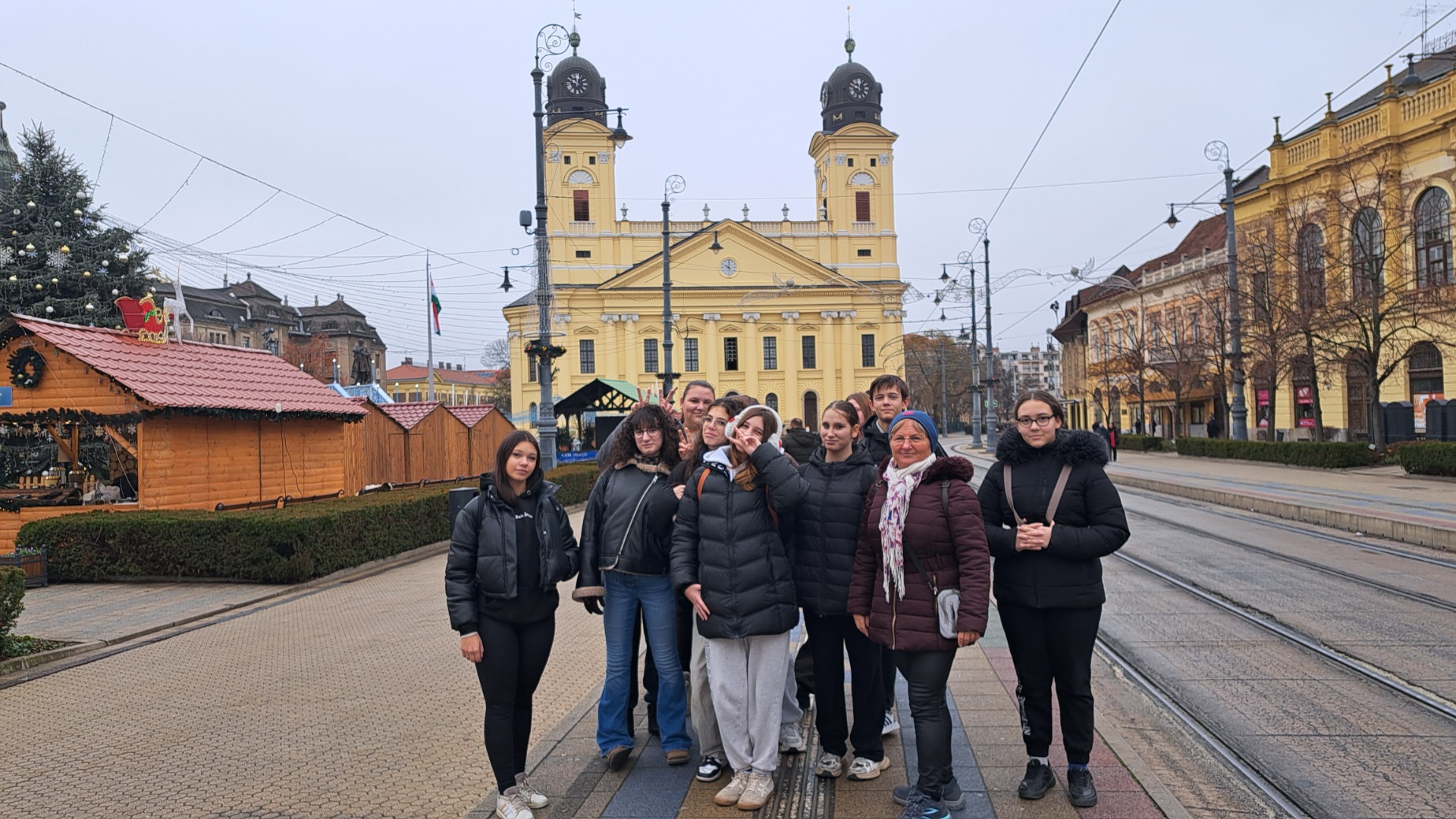 December 12-én Debrecenbe utazott a nyolcadik osztály. Az ország legnagyobb református templomában valódi toronytúrát jártunk be. Szakszerű idegenvezetéssel megismerkedtünk a templomhoz kapcsolódó történetekkel. Hallottunk elbeszéléseket, láthattuk a nagy magyarok Nagytemplomhoz kapcsolódó emlékeiről emléktárgyakat. A déli harangszót a templom padlásterében közelről hallottuk a híres Rákóczi-harang megszólalásakor. Mindkét tornyot felfedeztük, ahonnan a várost láttuk madártávlatból. A történelem óra után vidám korcsolyázás következett az adventi vásár gyönyörű műjégpályáján. Az adventi fények kezdtek felvillanni hazainduláskor, kis ízelítőt nyertünk a készület hangjaiból, a fényjátékokból.