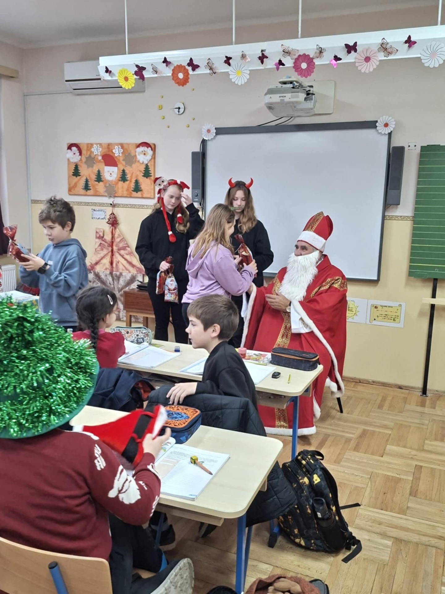 Nagy öröm számunkra, hogy a Mikulás ebben az évben ellátogatott iskolánkba. Érkezése vidámságot és szeretetet hozott közösségünkbe, emlékeztetve bennünket Szent Miklós püspök önzetlen jóságára és az ajándékozás keresztény üzenetére. A gyerekek versekkel, dalokkal fogadták és cserébe csomagokat kaptak. Köszönjük az SZMK-nak és a szülőknek a támogatást.