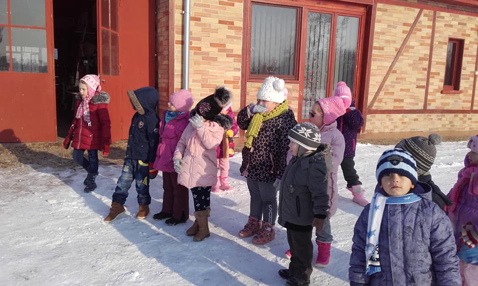 2019. január 11. péntek délelőtt meghívást kaptunk Virág Józsi bácsi udvarára, lovas szánkózásra. A szülőket előző este értesítettük, hogy megfelelően öltöztessék fel a gyermekeiket! Volt olyan kisgyermek, aki a hír hallatán alig tudott elaludni a várakozás izgalmától. Az iskolabusszal jutottak el a helyszínre, ahol a kis póni fogattal jó néhány kört tettek a tágas udvaron.